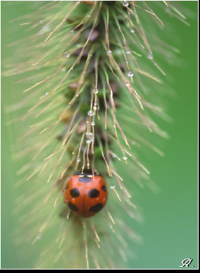 降りしきる雨の中 エノコログサの下で雨宿り。