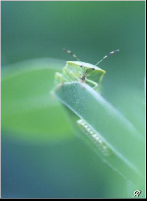 卵を見守るカメムシ君。